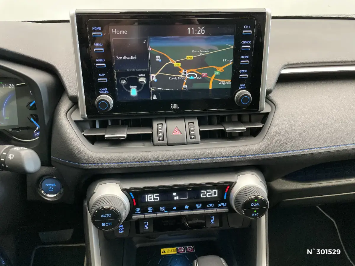 • Toyota Smart Connect avec écran couleur tactile 9" multifonction, 6 HP, navigation connectée et connectivité smartphone sans fil compatible AppleCar Play et Android Auto, et 4 ans de mises à  jour cartographiques et de services connectés inclus