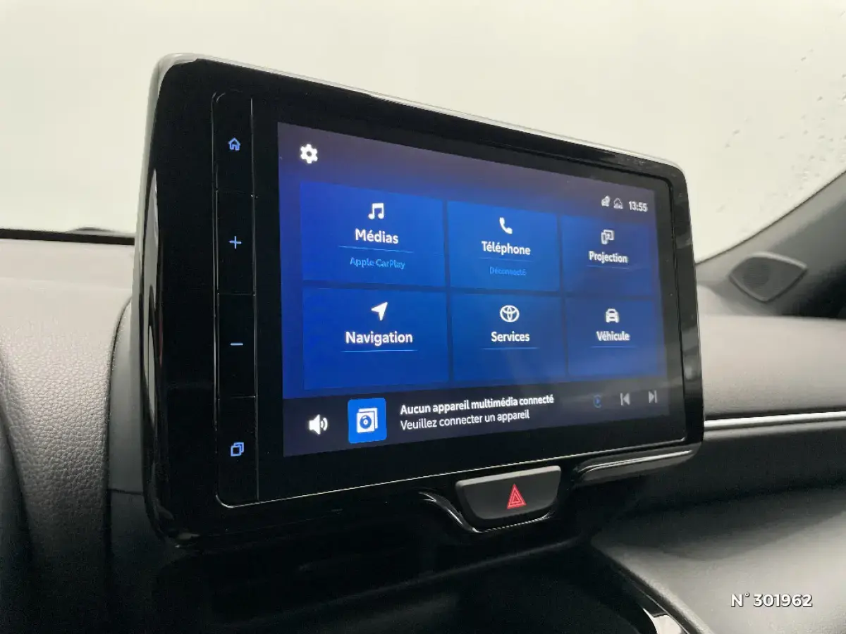 - Système multimédia Toyota Smart Connect : écran tactile 9", navigation connectée et contrôle à distance via l'application MyT (verrouiller/déverrouiller, climatisation et retrouver ma voiture avec allumage des feux clignotants)