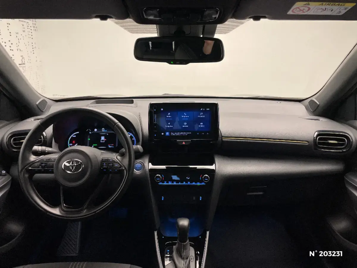 • Système multimédia Toyota Smart Connect : écran tactile 9", navigation connectée et contrôle à distance via l'application MyT (verrouiller/déverrouiller, relancer la climatisation et retrouver ma voiture avec allumage des feux clignotants) et 4 ans de mises à jour cartographiques et de services connectés inclus