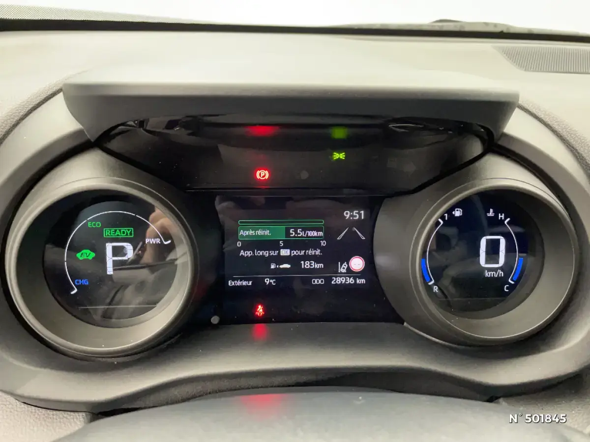 • Système multimédia Toyota Smart Connect : écran tactile 9", navigation connectée et contrôle à distance via l'application MyT (verrouiller/déverrouiller, relancer la climatisation et retrouver ma voiture avec allumage des feux clignotants) et 4 ans de mises à jour cartographiques et de services connectés inclus