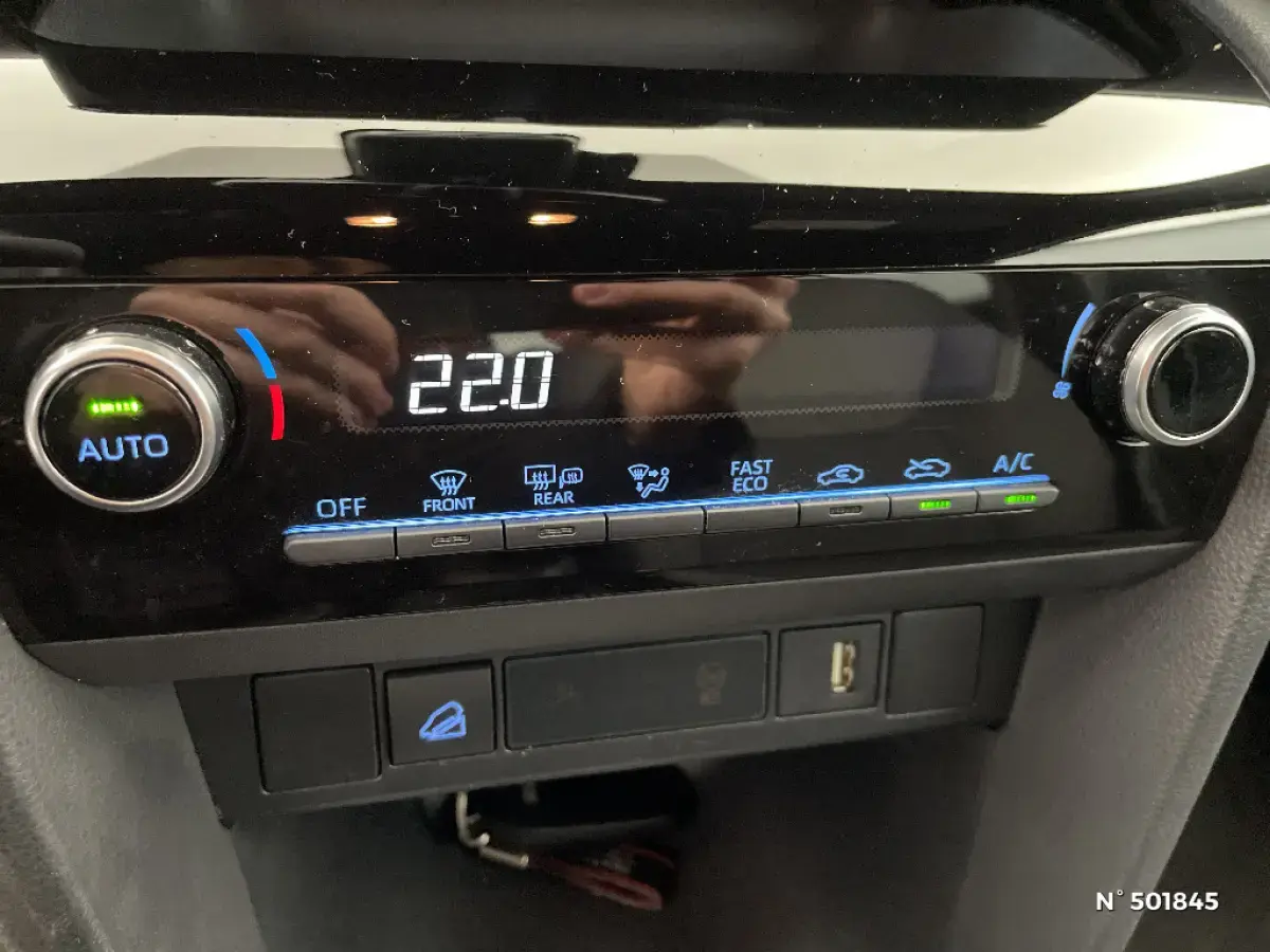 • Système multimédia Toyota Smart Connect : écran tactile 9", navigation connectée et contrôle à distance via l'application MyT (verrouiller/déverrouiller, climatisation et retrouver ma voiture avec allumage des feux clignotants)