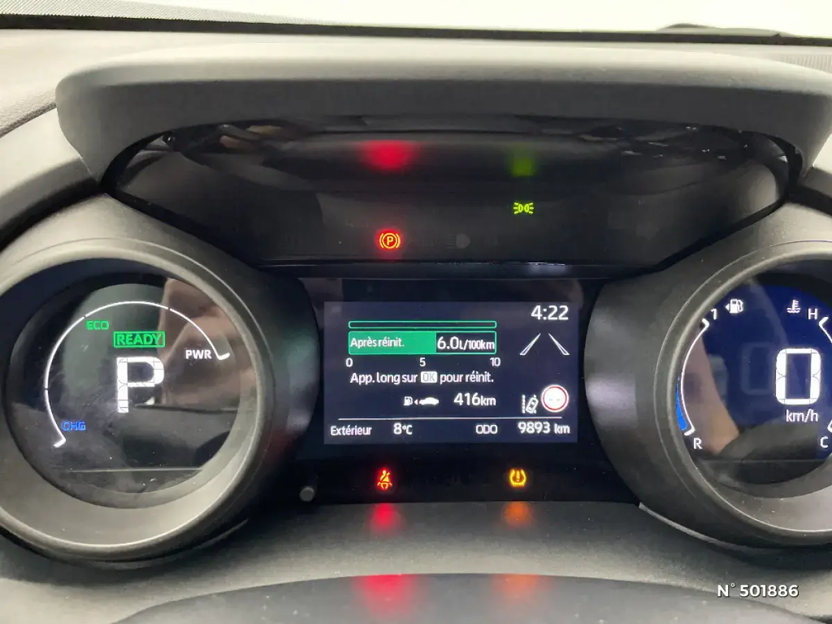 • Système multimédia Toyota Smart Connect : écran tactile 9", navigation connectée et contrôle à distance via l'application MyT (verrouiller/déverrouiller, relancer la climatisation et retrouver ma voiture avec allumage des feux clignotants) et 4 ans de mises à jour cartographiques et de services connectés inclus