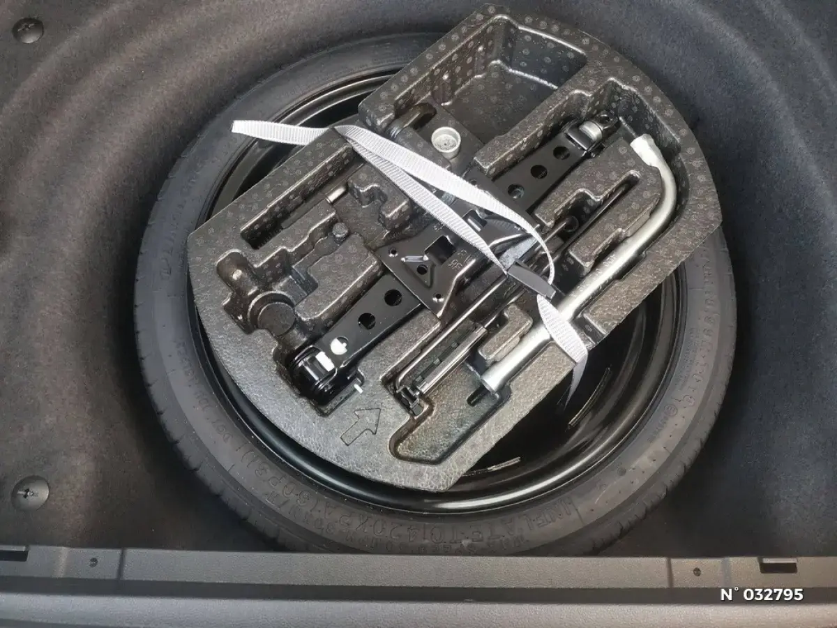 - Roue de secours à encombrement réduit, inclut cric et clé pour boulons de roue